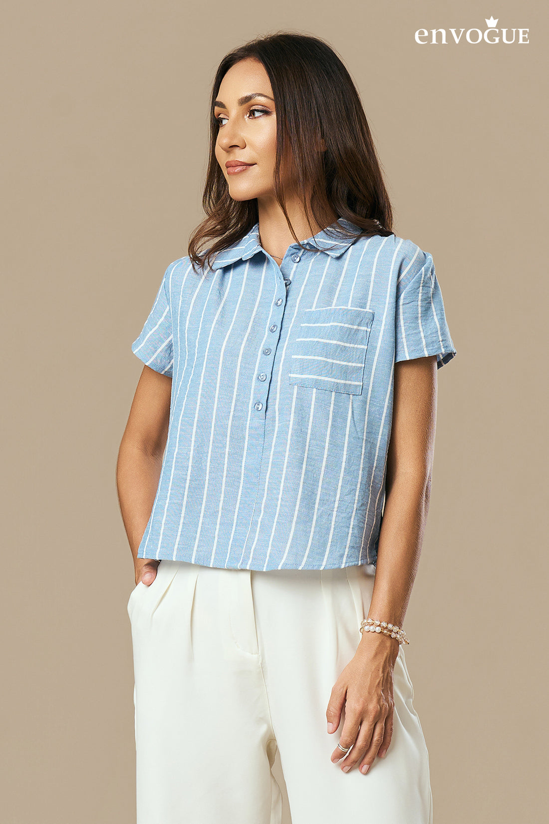 Envogue Ladies Casual Blouse Design HighlightsLoose Fit | Striped Pattern | Short Sleeve |...