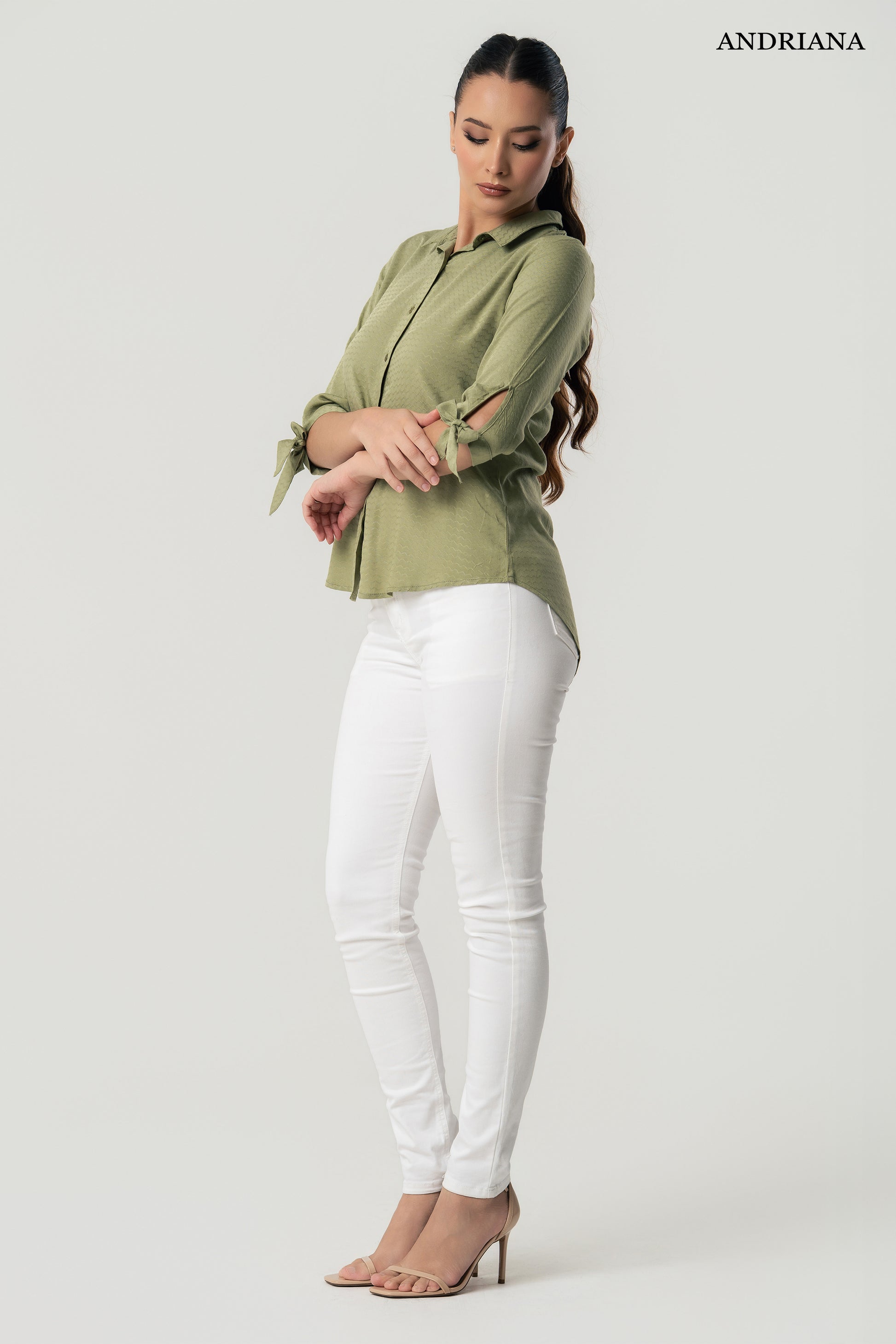 The Andriana Ladies’ Office Blouse (#ADR3794) combines elegance and comfort for the modern professional woman. Featuring a relaxed loose fit and 3/4 sleeves, this blouse offers a polished yet effortless look suitable for office or smart casual wear. Made from a soft and breathable fabric, it ensures all-day comfort without compromising on style. Available in timeless Pearl White, earthy Olive Green, classic Brown, and refreshing Mint Green, this versatile blouse adds a subtle pop of color to your wardrobe. With sizes ranging from S to XXL, the Andriana blouse is a must-have staple for every woman seeking style and ease.