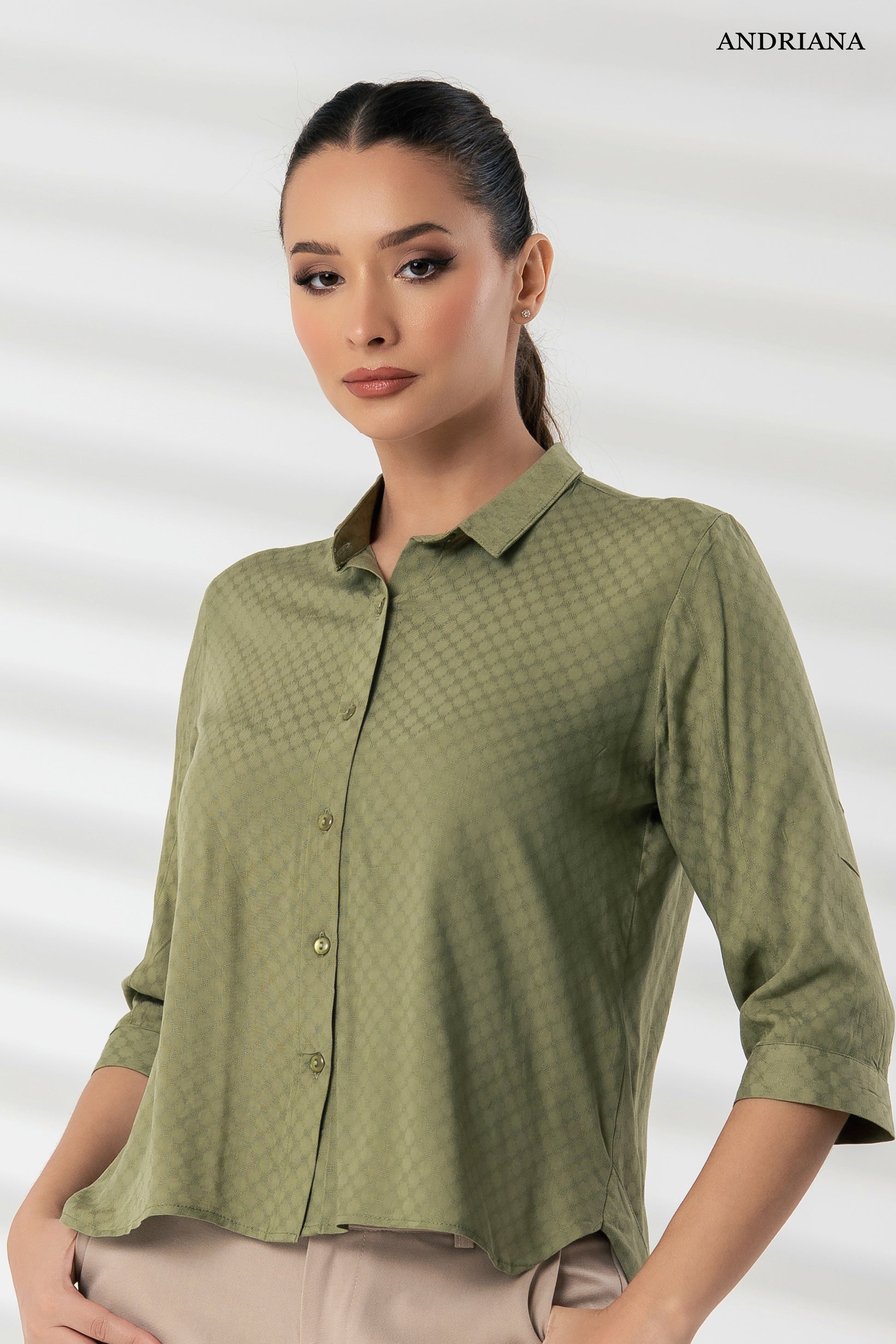The Andriana Ladies’ Office Blouse (#ADR4024) is a versatile addition to any wardrobe, offering a comfortable yet stylish option for office and smart casual wear. Designed with a relaxed loose fit and 3/4 sleeves, it provides a polished appearance without sacrificing comfort. Crafted from soft, breathable fabric, it ensures ease throughout the day. Available in Blue, Maroon, and Olive Green, this blouse adds classic and refreshing color choices to your collection. With sizes ranging from S to XXL, the Andriana blouse is an essential piece for modern women seeking effortless style.