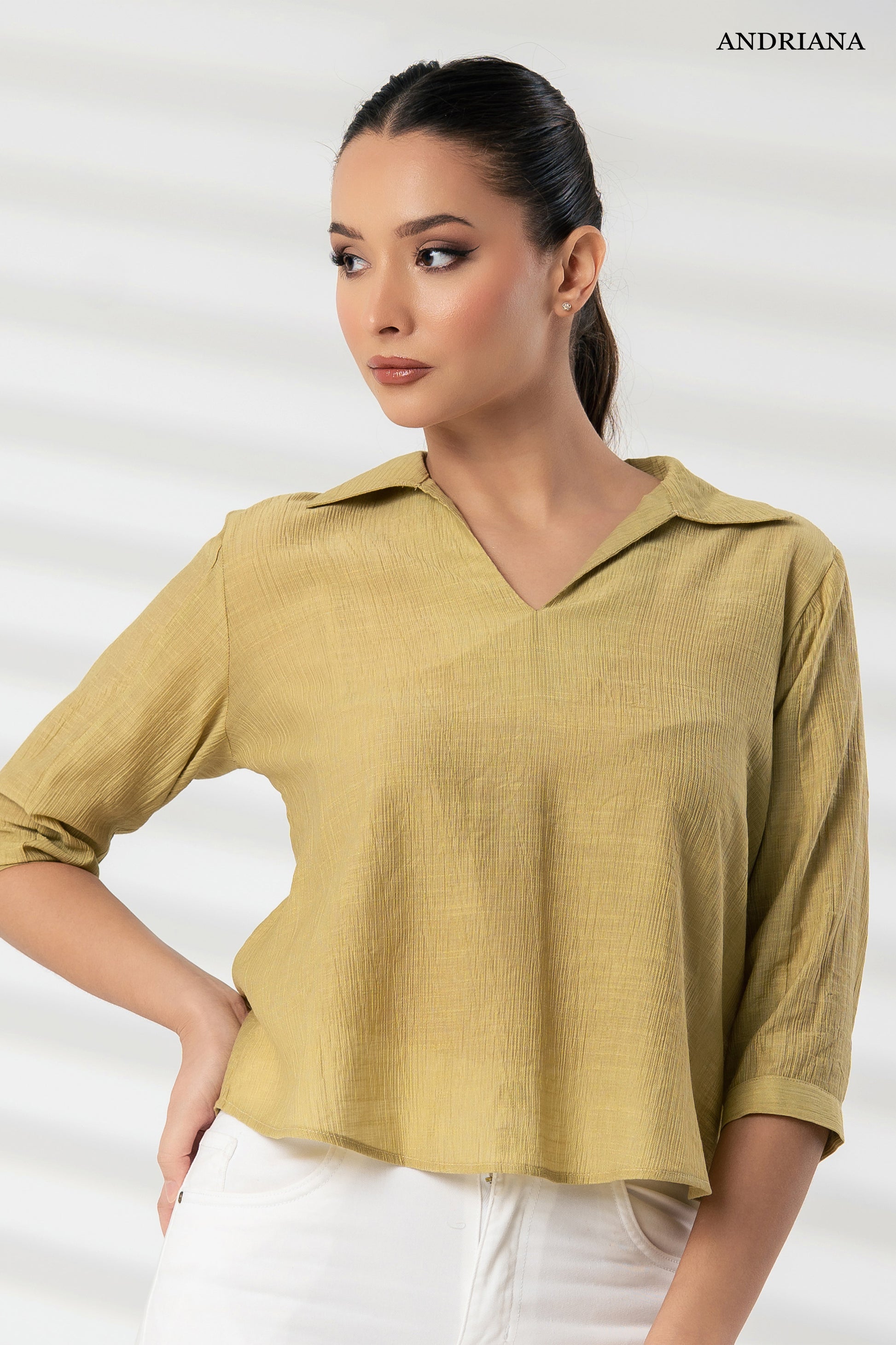 The Andriana Ladies’ Office Blouse (#ADR4075) is designed for effortless style and everyday comfort. With a regular fit and 3/4 sleeves, it provides a neat and elegant look suitable for office wear or casual smart occasions. Crafted from a soft, breathable fabric, it keeps you comfortable throughout the day while maintaining a polished appearance. Available in vibrant Gold and refreshing Lime, this blouse adds a bright, stylish touch to your wardrobe. Offered in sizes S to XXL, the Andriana blouse is a versatile and essential piece for every modern woman.