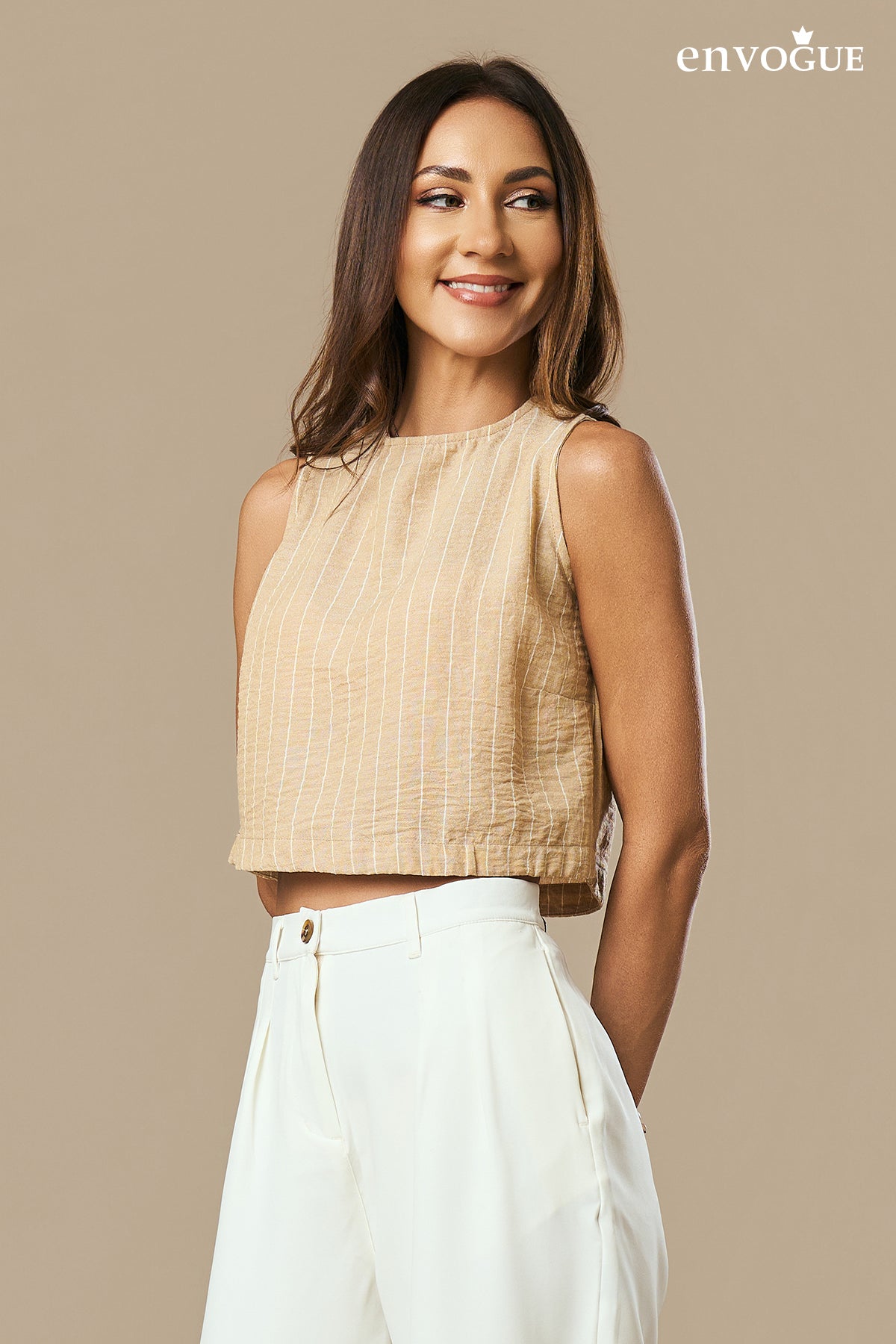 Add a touch of effortless style to your wardrobe with the En Vogue Ladies Casual Top. Featuring a relaxed loose fit and a classic striped pattern, this sleeveless top keeps you cool and comfortable throughout the day. Perfect for casual outings, weekend errands, or relaxed workdays, it pairs beautifully with jeans, skirts, or shorts for a chic, laid-back look.