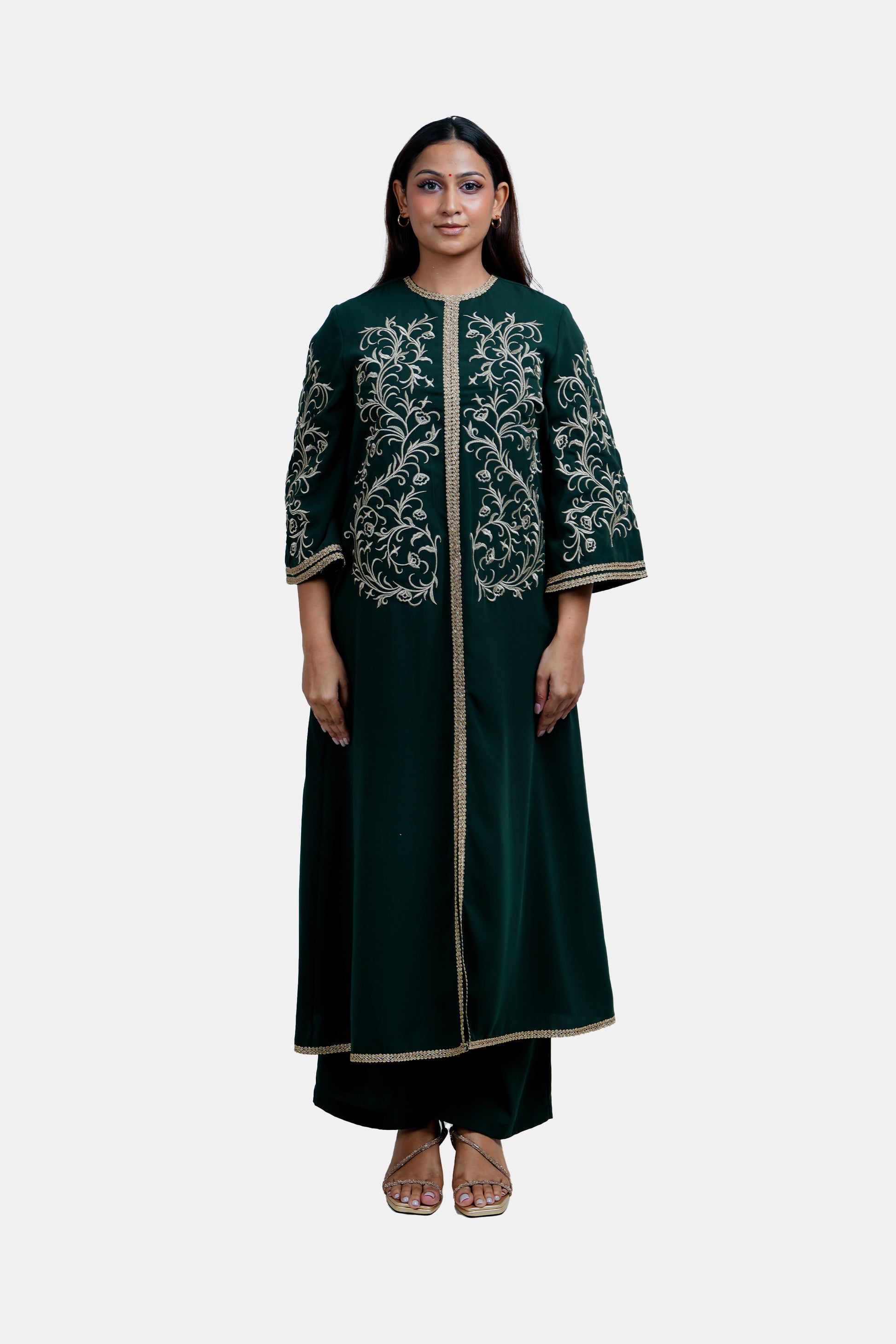 #H-0401-0088 is designed to bring elegance and sophistication to your party and evening wear. Featuring a flattering regular fit with a stylish printed design, this long-sleeve kurta offers a refined and graceful look. Made from soft, comfortable fabric, it ensures ease of wear while maintaining a polished appearance. Available in Navy, Black, Green, and Burgundy, and offered in sizes S, M, L, XL, and XXL. Perfect to pair with leggings, trousers, or palazzos for a chic, party-ready outfit.