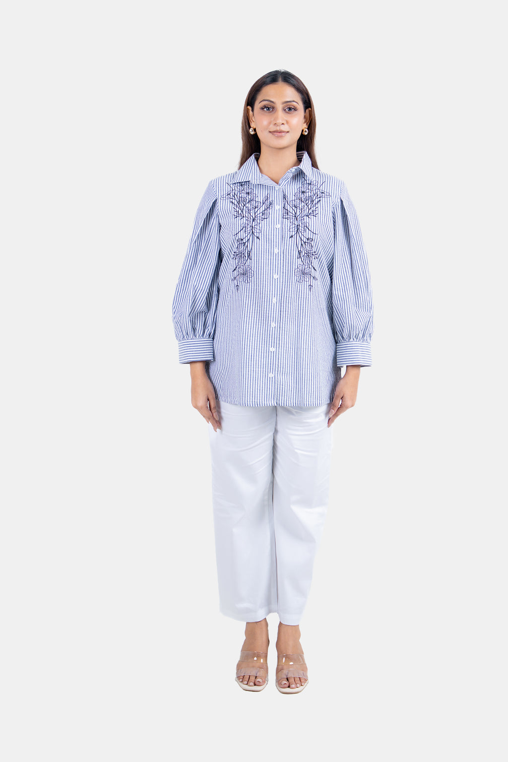 Trendy printed long-sleeve top designed for elegant casual or party occasions. Features a comfortable fit and graceful design from the HADA Exclusive collection.