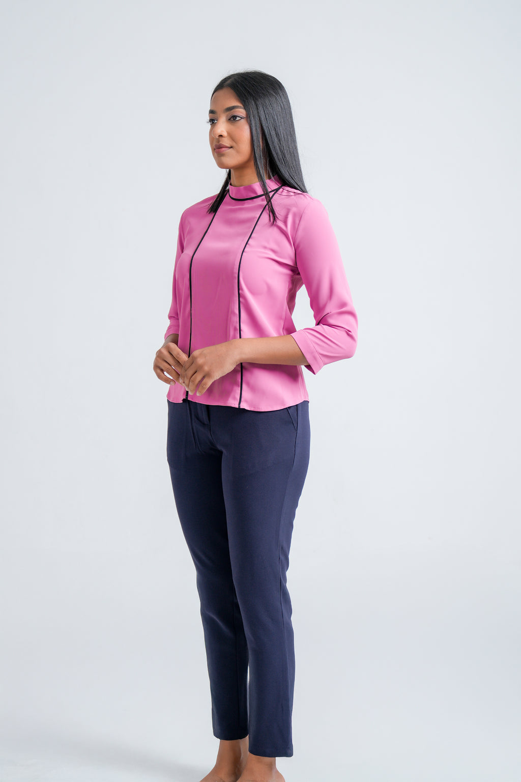 The En Vogue Ladies’ Office Blouse (#EO082-0521) is designed to bring timeless elegance and comfort to your workwear. With a flattering normal fit, 3/4 sleeves, and a clean solid-tone finish, this blouse ensures a smart, professional look. The smooth fabric provides all-day ease and pairs effortlessly with trousers or skirts for a polished office ensemble.