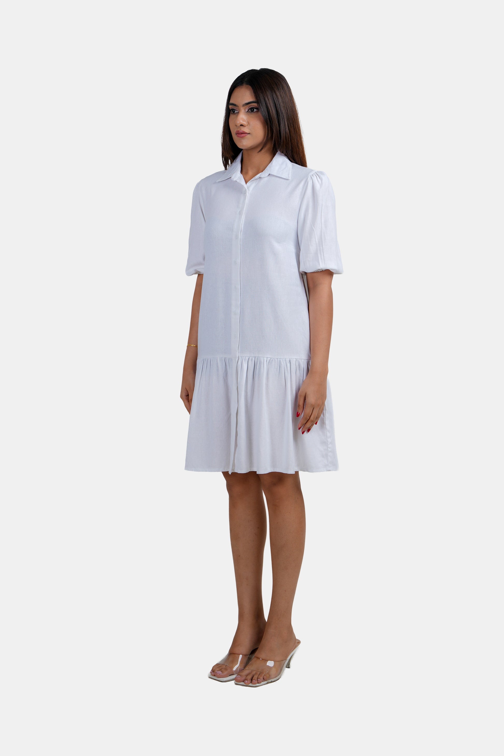MODANO Ladies White Frock, elegant regular fit with a clean and timeless silhouette, crafted from soft and breathable fabric for all-day comfort, classic white colour for a fresh and graceful look, sizes XS to XL, easy to style with sandals or heels, perfect for casual outings, office wear or special occasions.