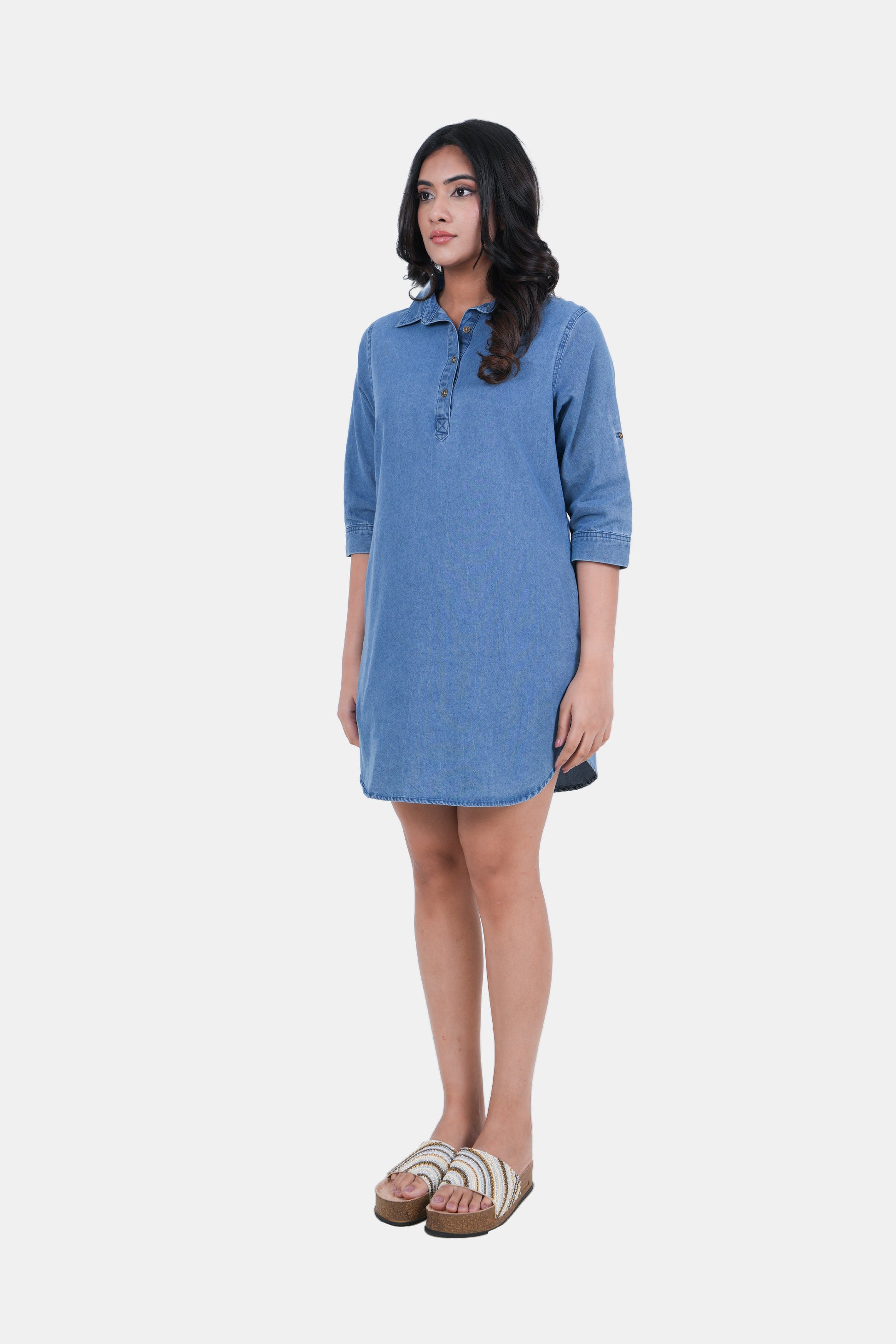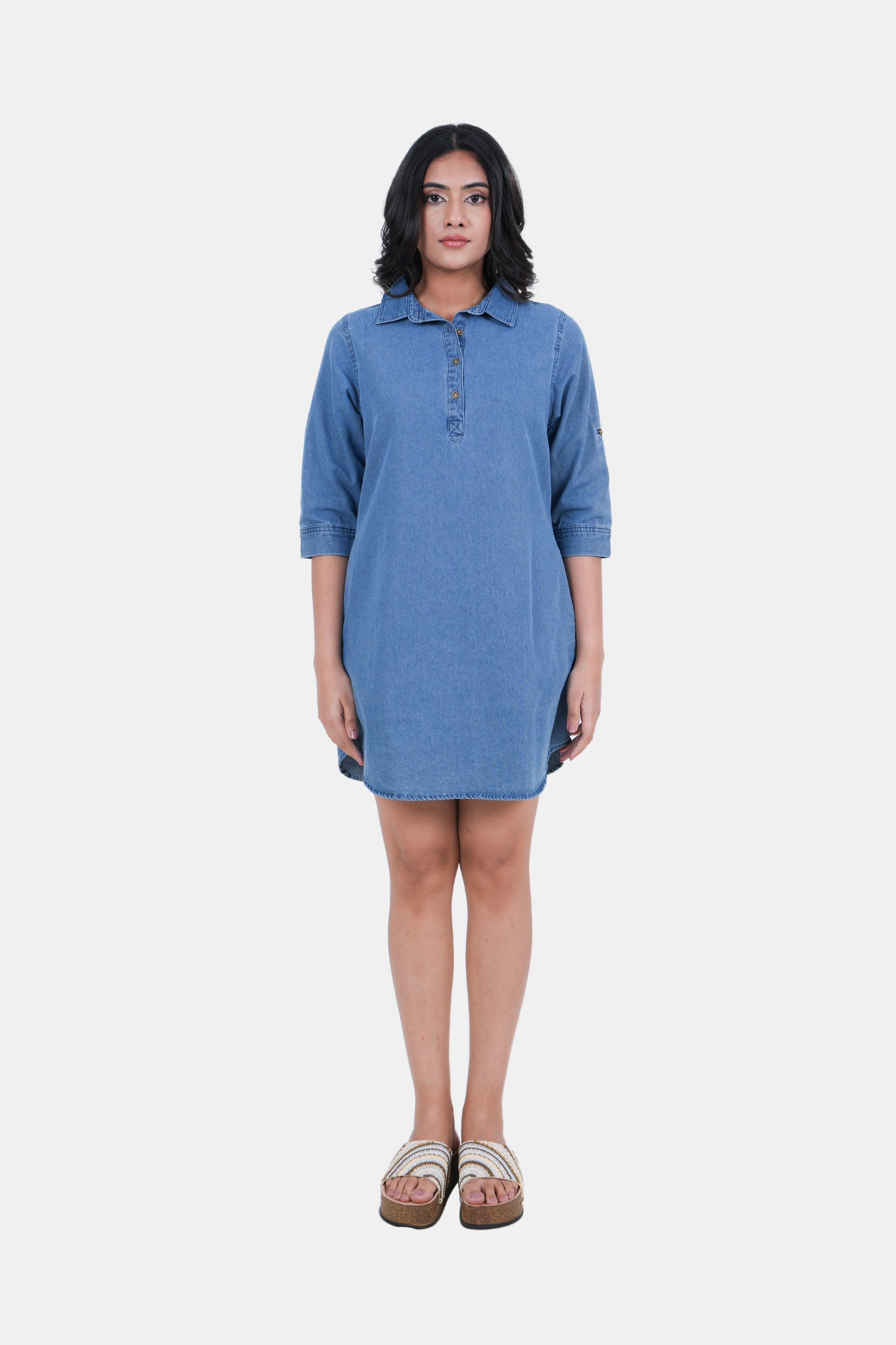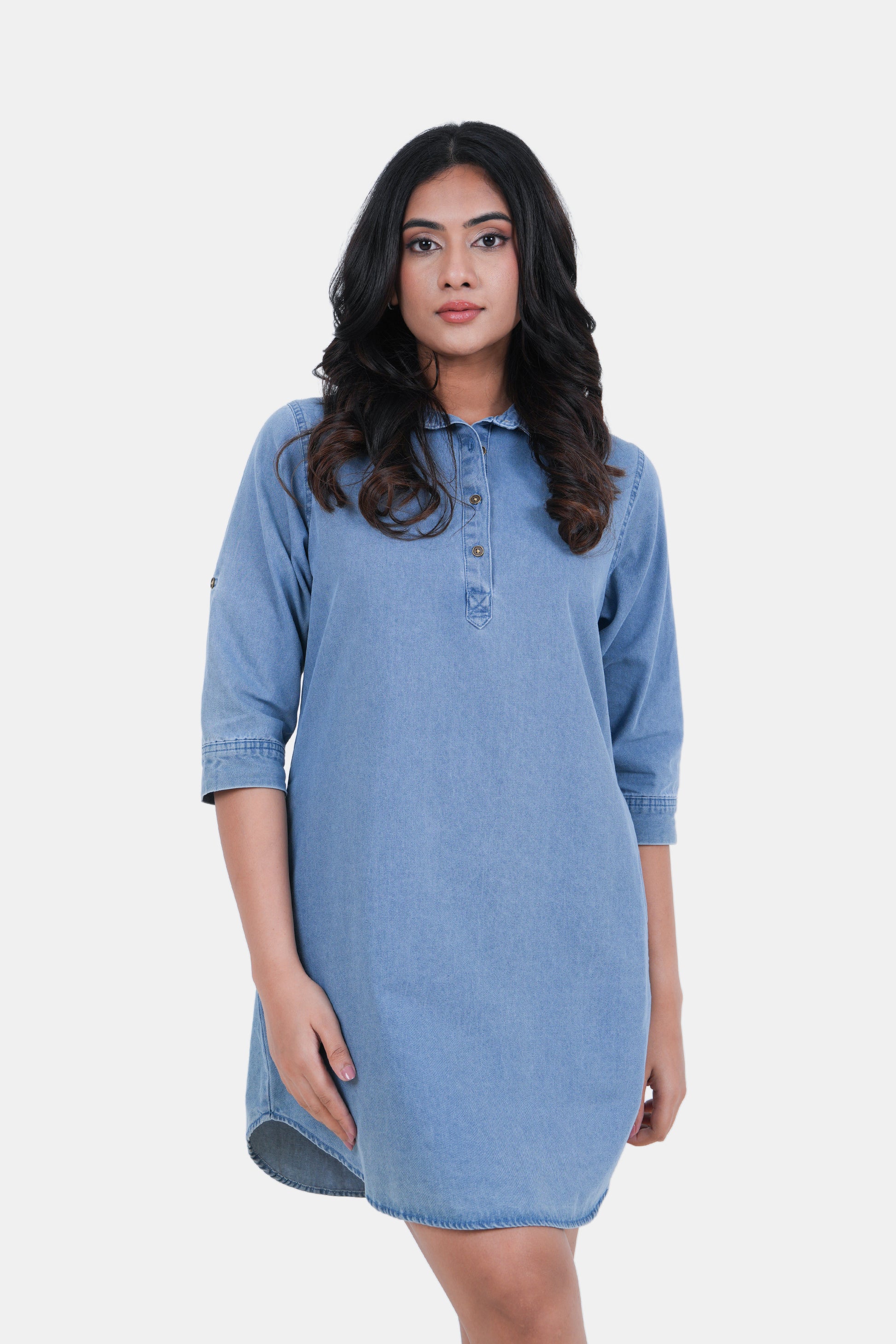Update your wardrobe with the effortlessly chic Modano Signature Denim Dress. Crafted from durable denim, this long sleeve piece is perfect for cooler days while maintaining breathable comfort. The clean silhouette and subtle structure offer everyday elegance that pairs well with boots or flats.